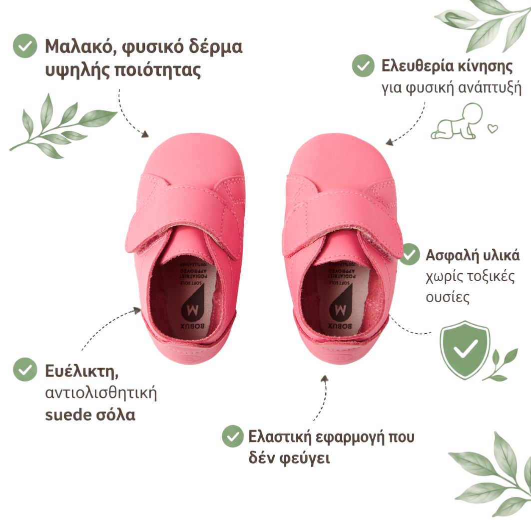 Τα Bobux Soft Sole είναι σχεδιασμένα για τα πρώτα στάδια ζωής του μωρού, προσφέροντας ελευθερία κίνησης και φυσική ανάπτυξη. Το μαλακό δέρμα και η ευέλικτη κατασκευή επιτρέπουν στο ποδαράκι να κινείται φυσικά, χωρίς περιορισμούς.