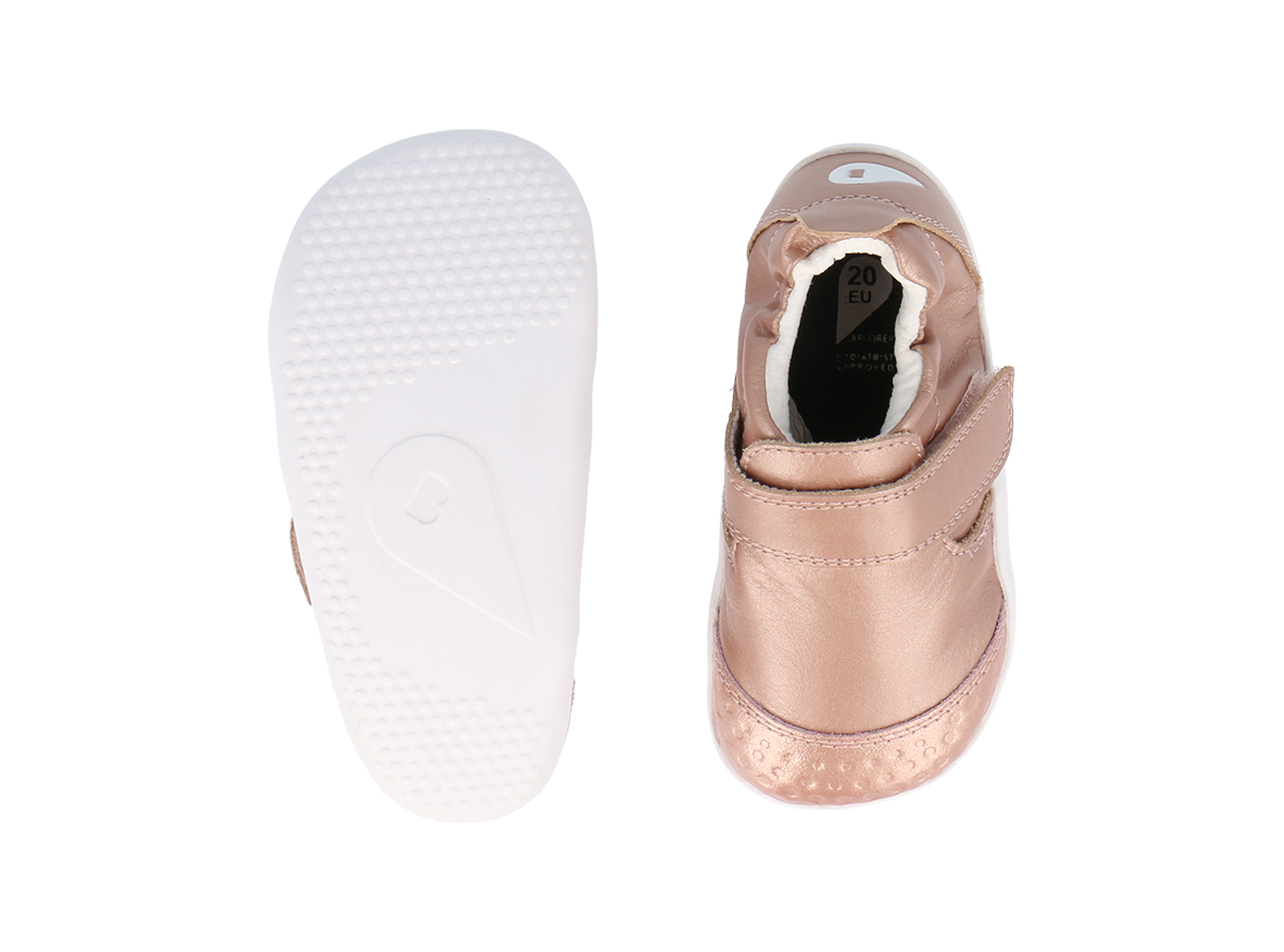 Το Xplorer Go διαθέτει μια εξαιρετικά ελαφριά και ευέλικτη σόλα από καουτσούκ EVA, που στηρίζει τα μικρά ποδαράκια κατά το μπουσούλημα και τα πρώτα βήματα. Με το ανθεκτικό, ενσωματωμένο καλύμμα προστασίας δακτύλων από δέρμα, το παπούτσι εμποδίζει τις φθορές και προσφέρει επιπλέον προστασία από τις σκληρές επιφάνειες.