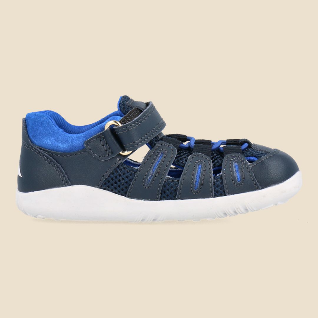 Το σανδάλι Cross jump έχει διάτρητο σχέδιο που επιτρέπει τη ροή αέρα, αλλά και κλειστή μύτη για να προστατεύει τα ευαίσθητα μικρά δάχτυλα των παιδιών. Το κλείσιμο με λουράκι με το εικονίδιο με το λογότυπο της Bobux προσαρμόζεται εύκολα και η επένδυση στη φτέρνα παρέχει επιπλέον άνεση. Το τέλειο παιδικό σανδάλι για καθημερινή χρήση